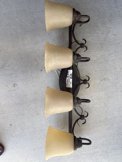 4-light bathroom vanity fixture featuring an oil-rubbed bronze finish and amber glass shades, similar to designs from Westmore Lighting and Pro Track$50Glendale, AZ
