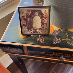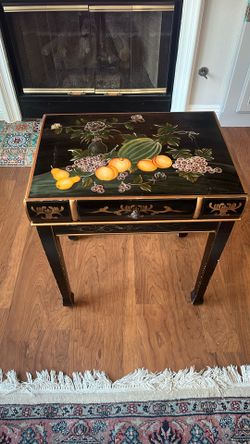 Beautiful Black Wood Hand Painted Fruit And Flower Table With A Front Drawer$100Mission Viejo, CA