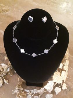 14k White Gold Clover Leaf Necklace And Earrings Set Black Mother Of Pearl $2,999North Miami Beach, FL