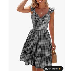 Women's Summer Plaid Dress Casual V Neck Gingham Dress Women Smocked A-line$15Vancouver, WA