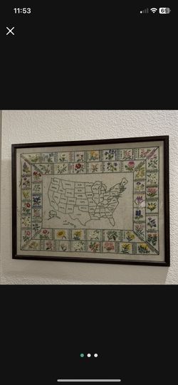 VINTAGE 1973 PARAGON EMBROIDERED STATE FLOWER MAP SAMPLER FRAMED $180Las Vegas, NV