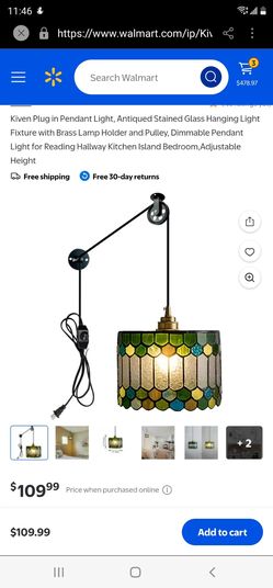 Kiven Plug in Pendant Light, Antiqued Stained Glass Hanging Light Fixture with Brass Lamp Holder and Pulley, Dimmable Pendant Light for Reading Hallwa$50Los Angeles, CA