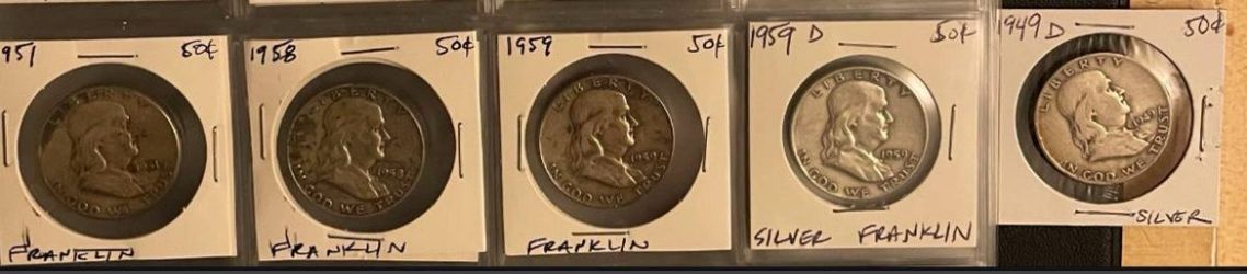 5 Franklin Half Dollars$165Hanford, CA