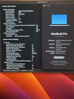 Macbook Pro 15" 2017 2.8 Ghz i7 16GB 512GB$275Fountain Valley, CA