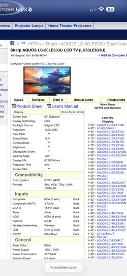 80” TV Sharp AQUOS LC-80LE633U LCD TV $400Denver, CO