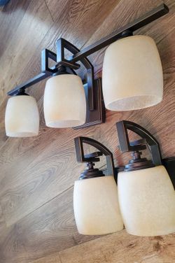 HAMPTON BAY - BRONZE 3 LIGHT VANITY AND 2 MATCHING SCONCES. $50Tempe, AZ