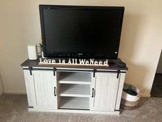 Beautiful Grey TV Stand With Sliding Barn Door Shelves $100Penndel, PA