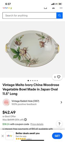 Vintage Meito China "Woodrose" oval serving platter with handles$65Rancho Suey, CA