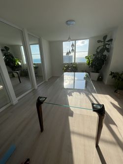 Glass Table With Wooden Legs 8 Feet $100Sunny Isles Beach, FL