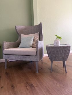 Janus et Cie Set Of Arm Chair In Gray & Side Table $600La Habra Heights, CA
