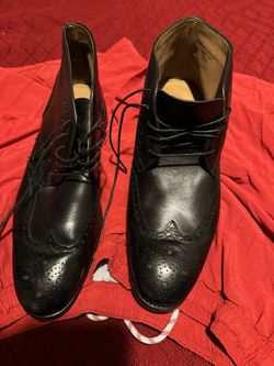 This is a pair of black leather Moral Code wingtip ankle boots, possibly the "Fazona2" model$25Anaheim, CA