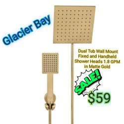 Modern 1-Spray 7.9 in. Dual Tub Wall Mount Fixed and Handheld Shower Heads 1.8 GPM in Matte Gold$59Newark, NJ