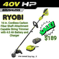 40V HP Brushless 16 in. Cordless Carbon Fiber Shaft Attachment Capable String Trimmer with 4.0 Ah Battery and Charge=r$189Newark, NJ