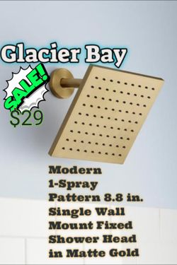 Modern 1-Spray Pattern 8.8 in. Single Wall Mount Fixed Shower Head in Matte Gold$29Newark, NJ