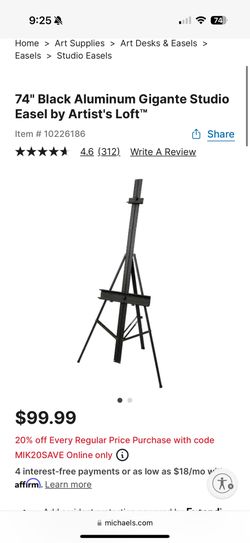 Art painting EASEL - 74" Black Aluminum Gigante Studio Easel by Artist's Loft™$30Miami, FL