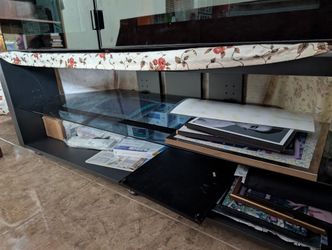 Modern Black TV Stand – Solid Top, Glass Shelves$90Rialto, CA