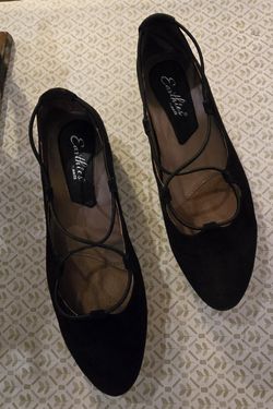 #1002 Womens 8, Black Leather Suede Earthies Flats$25St. Louis, MO