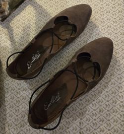 #1001. Women's 8, Leather Suede beige/Taupe Earthies Flats$25St. Louis, MO
