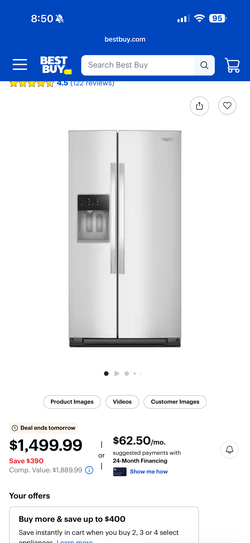Whirlpool - 28.7 Cu. Ft. Side-by-Side Refrigerator with TruCool System - Fingerprint-Resistant Stainless Finish$900Poway, CA