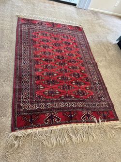 AFGHAN KHAMYAB WITH GEOMETRIC MEDALLIONS DESIGN HAND KNOTTED DEEP AND SATURATED RED DENSER WEAVE WITH SHINY WOOL ORIENTAL RUG$225Yorba Linda, CA