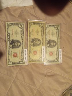 $5 Red Seals Certificates 1963$30Zebulon, NC