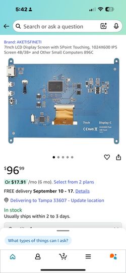 7-Inch LCD Display Screen with Touch – 1024x600 Pixel (Raspberry Pi & Small Computer Compatible) Brand new 7” LCD Display-C with touch capability, pe$45Tampa, FL