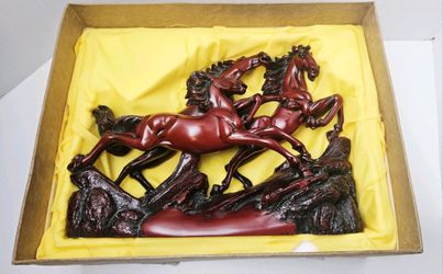 Rare Asian Large Mandarin Red Resin 3 Galloping Horses Figurine$150Corona, CA