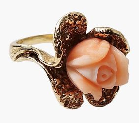 VTG 14K Yellow Gold Carved Coral Rose Flower Motif Band Ring Sz 6.5 8.8g$950Corona, CA