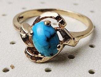 14k Gold Natural Cabochon Oval Tibet Turquoise Ring 5" 2gm$420Corona, CA