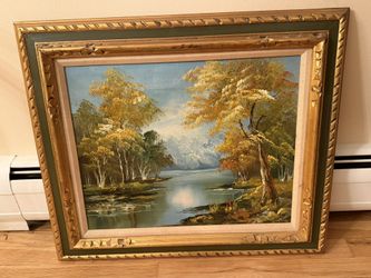 Original Oil Painting on Canvas Autumn River Landscape Unsigned Ornate Carved Gold Frame 16x20$95Paramus, NJ