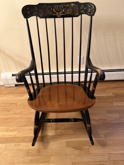 Hitchcock Stenciled Rocking Chair Black Gold Fruit Basket Signed Hitchcocksville CT Vintage$195Paramus, NJ