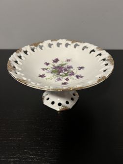 Lefton China Reticulated Pedestal Compote Candy Dish with Hand Painted Violets $39Hialeah Gardens, FL