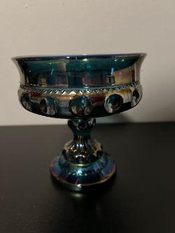 Vintage Indiana Blue Carnival Glass Iridescent Kings Crown Thumbprint Compote $30Hialeah Gardens, FL