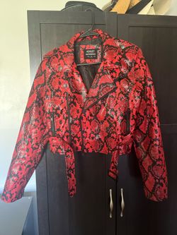 Red And Black Faux Leather Snakeskin Crop Jacket$35Pretty Praire, KS