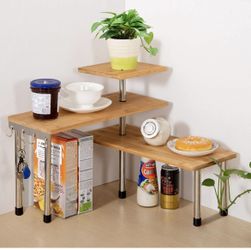LIKE NEW Ollieroo Upgarde 3 Tier Desktop Organizer Office Kitchen Corner Shelf Unit Spice Rack Adjustable Bamboo Storage Rack (with Hooks)$25Fontana, CA