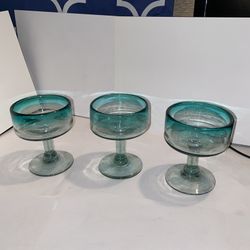 Mexican Hand Blown Margarita Glassware Cobalt Blue Rim Set of 3$25Hemet, CA