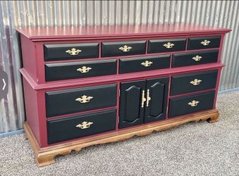 Stunning Solid Maple Dresser – Merlot and Black, 13 Dovetail Drawers$595Hesperia, CA