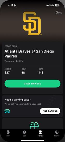 3 Padres Tickets 3/30$150Torrance, CA