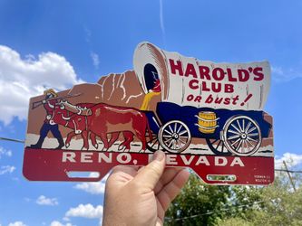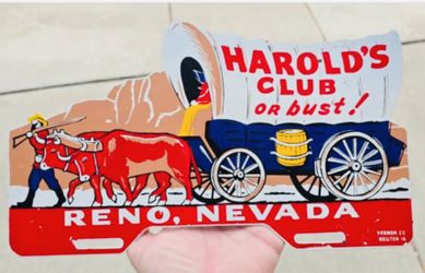 HAROLDS CLUB OR BUST RENO NEVADA VINTAGE TIN LICENSE PLATE TOPPER.$200Phoenix, AZ