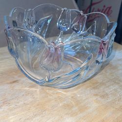 Mikasa Clear Crystal Bowl Iridescence Pink Blue Tivoli Tulips Green Leaves 8"$20Nuevo, CA