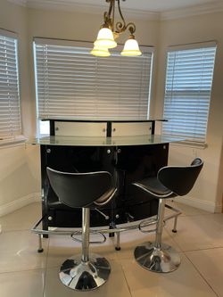 Contemporary Glass Top Bar Set With Two Stools$100San Gabriel, CA