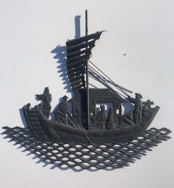 Mid Century Vintage Asian Chinese Cutout Tin Metal Silhouette Boat Scene$50Simi Valley, CA