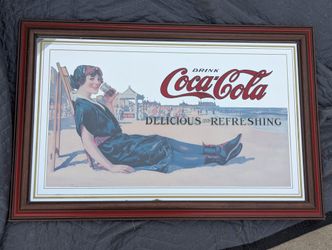 Vintage Coca Cola Girl On Beach Wood Framed Pub Bar Mancave Mirror Sign 29"x 19"$90Placentia, CA