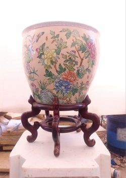 14" Large Chinese Hand Painted Porcelain Fish Bowl/Planter w/Stand$99Thousand Palms, CA
