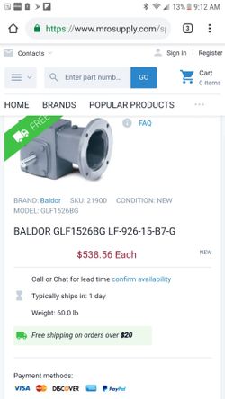Baldor speed reducer , brand new, never used BALDOR GLF1526BG,$150Davie, FL
