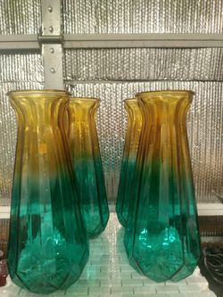 Clear Glass Teal And Gold Flower Vases $10Phillips Ranch, CA