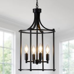 4-Light Black Chandeliers for Dining Room, Foyer Chandeliers Lantern Tiered Industrial Ceiling Light Metal Modern Farmhouse Pendant Lights for Kitchen$35Fresno, CA