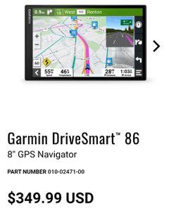Garmin DriveSmart 86 8" GPS with Built-In Bluetooth, Map Updates and Traffic$200Fresno, CA