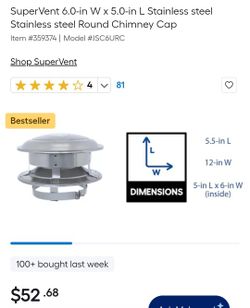 SuperVent 6.0-in W x 5.0-in L Stainless steel Stainless steel Round Chimney Cap$35Fresno, CA