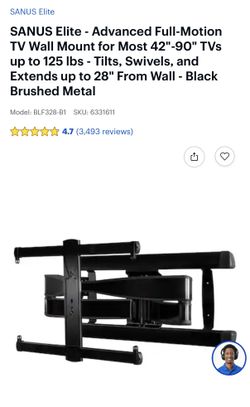SANUS Elite - Advanced Full-Motion TV Wall Mount for Most 42"-90" TVs up to 125 lbs - Tilts, Swivels, and Extends up to 28" From Wall - Black Brushed $150Rialto, CA